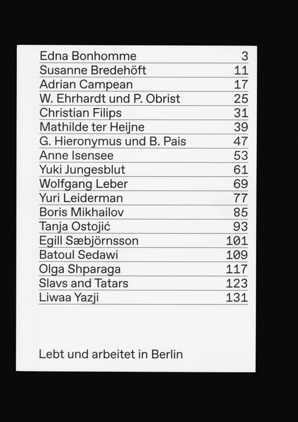 Lebt und arbeitet in Berlin 18 Gespräche mit Künstler*innen aus Berlin, herausgegeben von Marina Naprushkina.