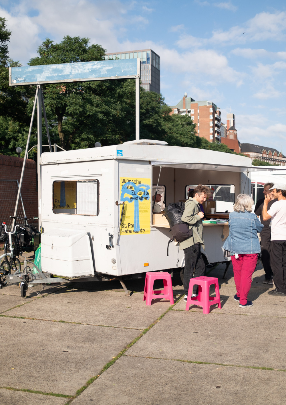 St. Pauli Hafenkante Anknüpfend an die Wunschproduktion des Park Fiction soll an der Hafenkante in St. Pauli gemeinsam getestet werden, was der Ort braucht, was zukünftig funktionieren könnte und was nicht. Wir haben für den temporären Ort einen Werkzeugkasten für analoge und digitale Grafiken geschaffen. Ein Projekt von Projektbüro und UVM, beauftragt von der Umweltbehörde Hamburg.