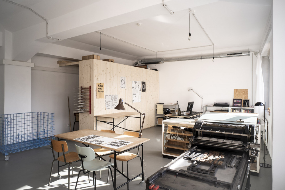 Unser alltägliches Werkzeug mit schier unendlichen Möglichkeiten. Unfassbar effizient, aber manchmal schwer zu fassen. Deshalb schätzen wir die Arbeit mit unseren Händen und die Einschränkungen, die das Analoge mit sich bringt: Schriftgrößen, die von Holzlettern vorgegeben sind, die Schönheit von Fehlern und die Endgültigkeit von Entscheidungen. In unserer Werkstatt findet man jenseits der Schreibtische eine alte Druckmaschine, Farben und Papiere, einen Stiftplotter und viele Bücher.