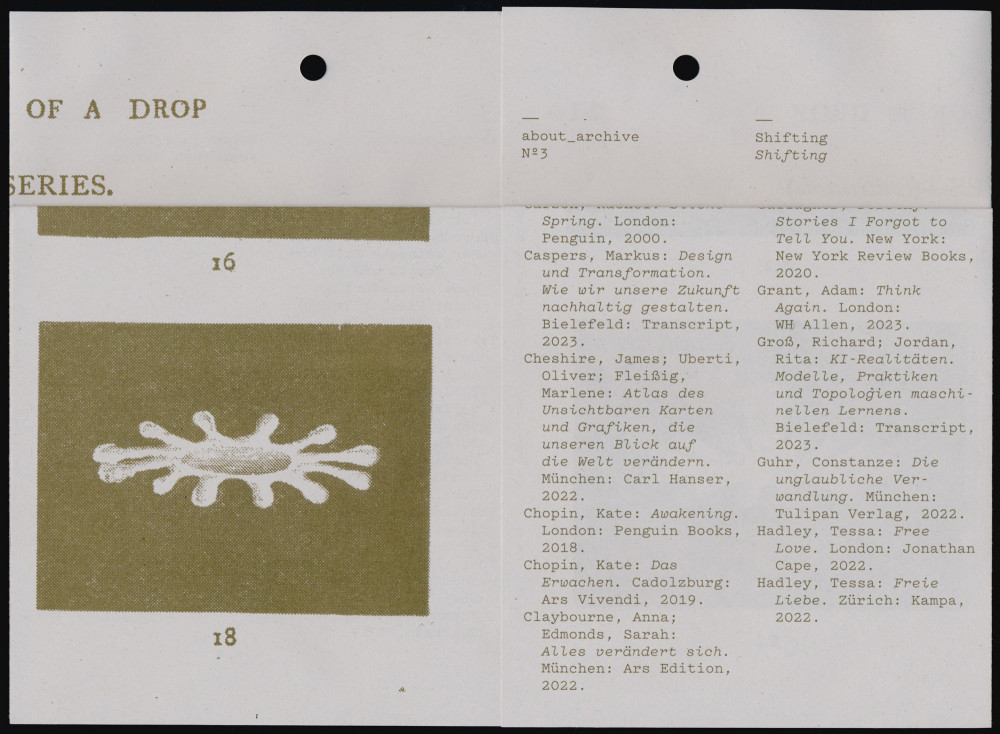about_bookshop ist eine kleine und ebenso großartige Buchhandlung in Berlin-Mitte. Halbjährlich gibt sich der Laden ein Thema und stellt ein völlig neues Sortiment zusammen. Um die Bibliographien der vergangenen Themen festzuhalten haben wir ein Faltplakat entwickelt. Die Ausgaben 1 bis 3 sind gedruckt und im Laden erhältlich, weitere folgen.