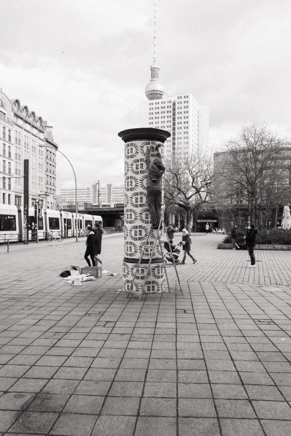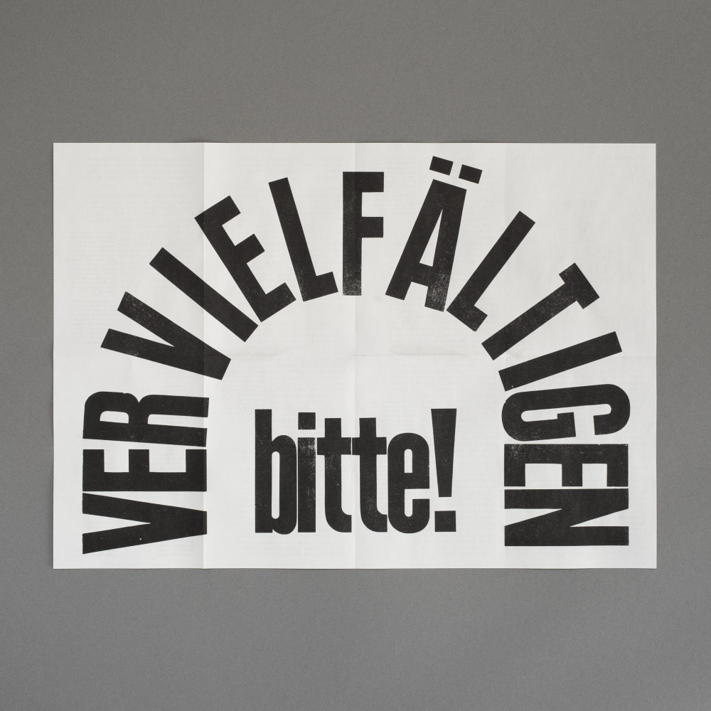 Ein Ort und ein offener Brief. Eine Aktion, die danach fragt, wem die visuellen Räume der Stadt gehören. Und wie die öffentlichen Flächen als Orte gesellschaftlicher und kultureller Kommunikation zurückgewonnen werden können, die von kommerzieller Werbung versiegelt sind. Vervielfältigen bitte! hat diese Fragen in den Stadtraum gestellt und dafür die Litfaßsäule am Hackeschen Markt besetzt. Das Plakat versteht sich als Kopiervorlage und urbanes Gestaltungsmittel. Es soll verbreitet werden, visuellen Raum einnehmen und ihn vervielfältigen.